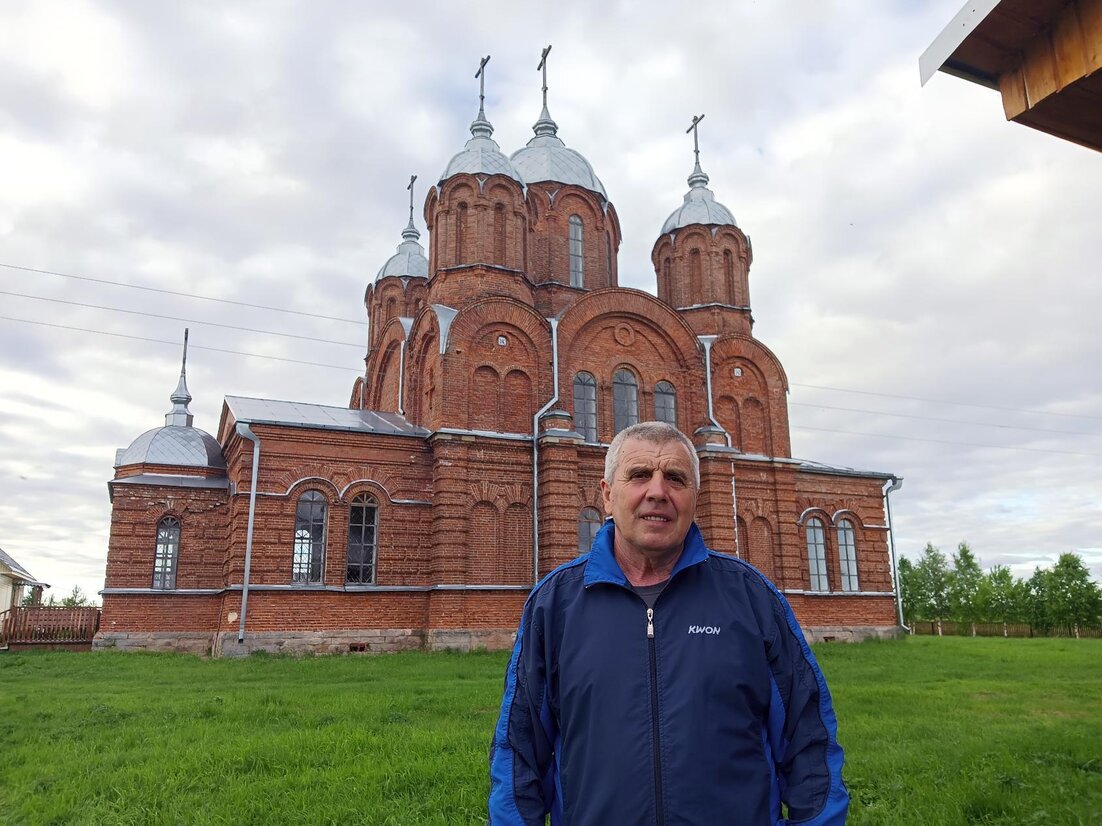Эта история о восстановлении Храма. Обветшавшие дома, непаханые поля, нескошенные луга. Пьянство и безразличие деревни, подковой окружающей холм, на котором – огромный, но сильно разрушенный храм. Такая картинка была еще в то время, когда Покровский храм был без куполов и перекрытий. Но даже тогда он был красив, красив какой-то потрясающей, пейзажной красотой самой картинки – уходящая вдаль Пинега, над которой огромный храм на горе с раскинувшейся вокруг просторной деревней. Когда Миша Суховерхов, пожарник, десантник и в прошлом любитель покуролесить, взглянул на это трезвыми глазами, он не смог удержаться. Пить бросил и стал по кирпичику этот храм восстанавливать. Сам, понимаете? Со временем вокруг него образовалась компания таких же, недоверчиво поглядывающих, но поддерживающих. По кирпичику, по доске. Ни у кого не спросив благословений и разрешений… «Почему? – Красота уходит». Мы поддержали этот проект по разным мотивам, но главным был тот, что это нужно было им самим, Мише и его друзьям, пятидесятилетним и старше мужикам. А впоследствии и всей деревне. Мы потом ходили по разным инстанциям, светским и церковным. «Восстанавливаете – молодцы». По кирпичику. Больше 10 лет. И оказалось, что деревня-то помнит времена, когда люди работали, а на горе была красота. Там тройка была, на горе-то, еще старая Никольская церковь и колокольня. И оказалось, что эта деревенская память – удивительная субстанция, ее просто надо было разбудить, что Миша и его друзья сделали…
